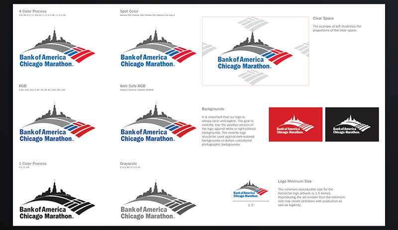 The ask was to create an on-brand logo that was both iconic and dynamic and could be used everywhere from billboards to marathon medals to small web/social ads. Using an agile approach to collaborate and get timely feedback and approvals from the supporting agencies, internal brand team, and senior marketing leadership, the final logo combined the iconic visual equity of Chicago's skyline with the open road to help create a sense of motion while also framing the Bank of America event name and Flagscape.